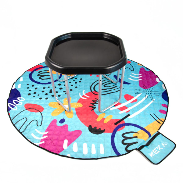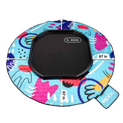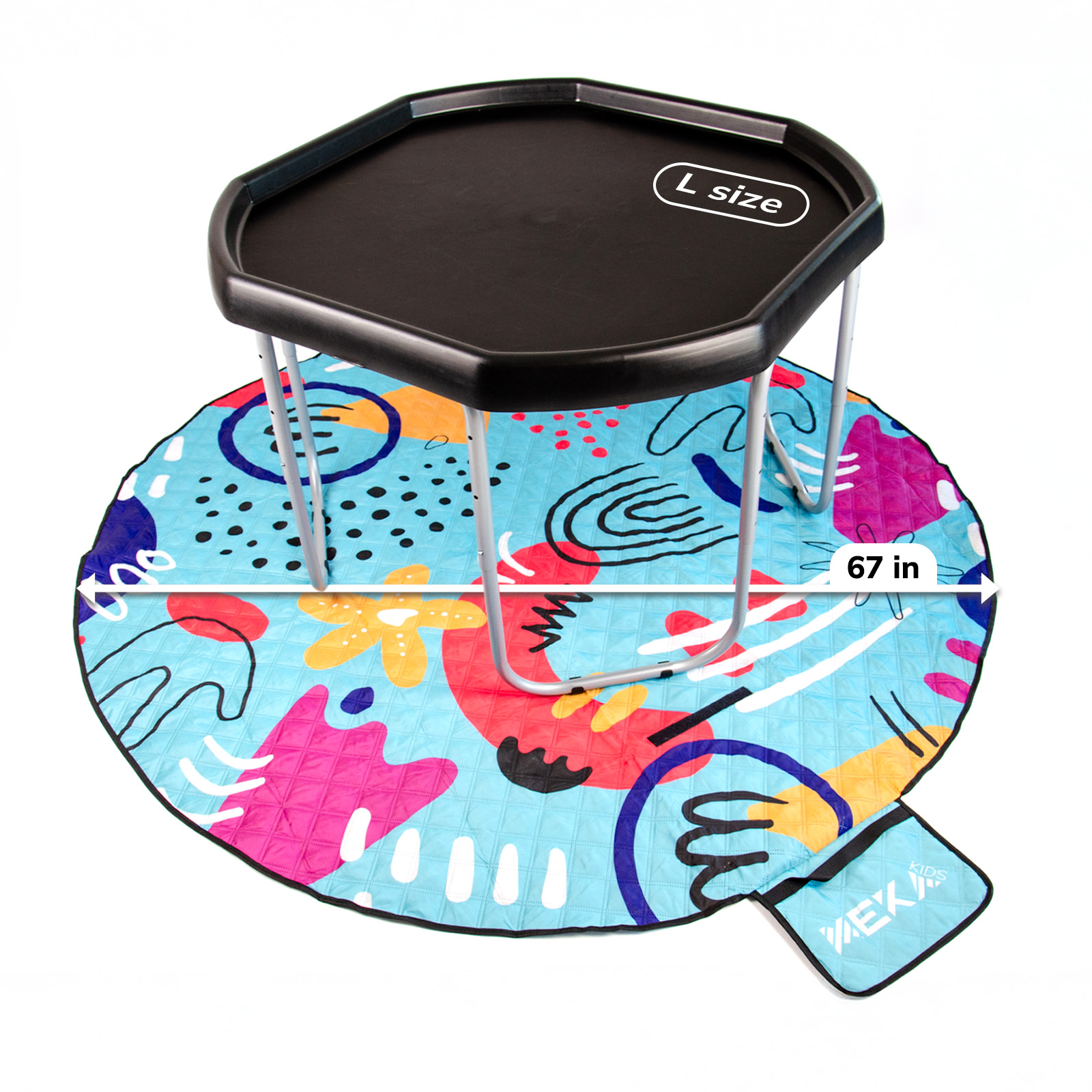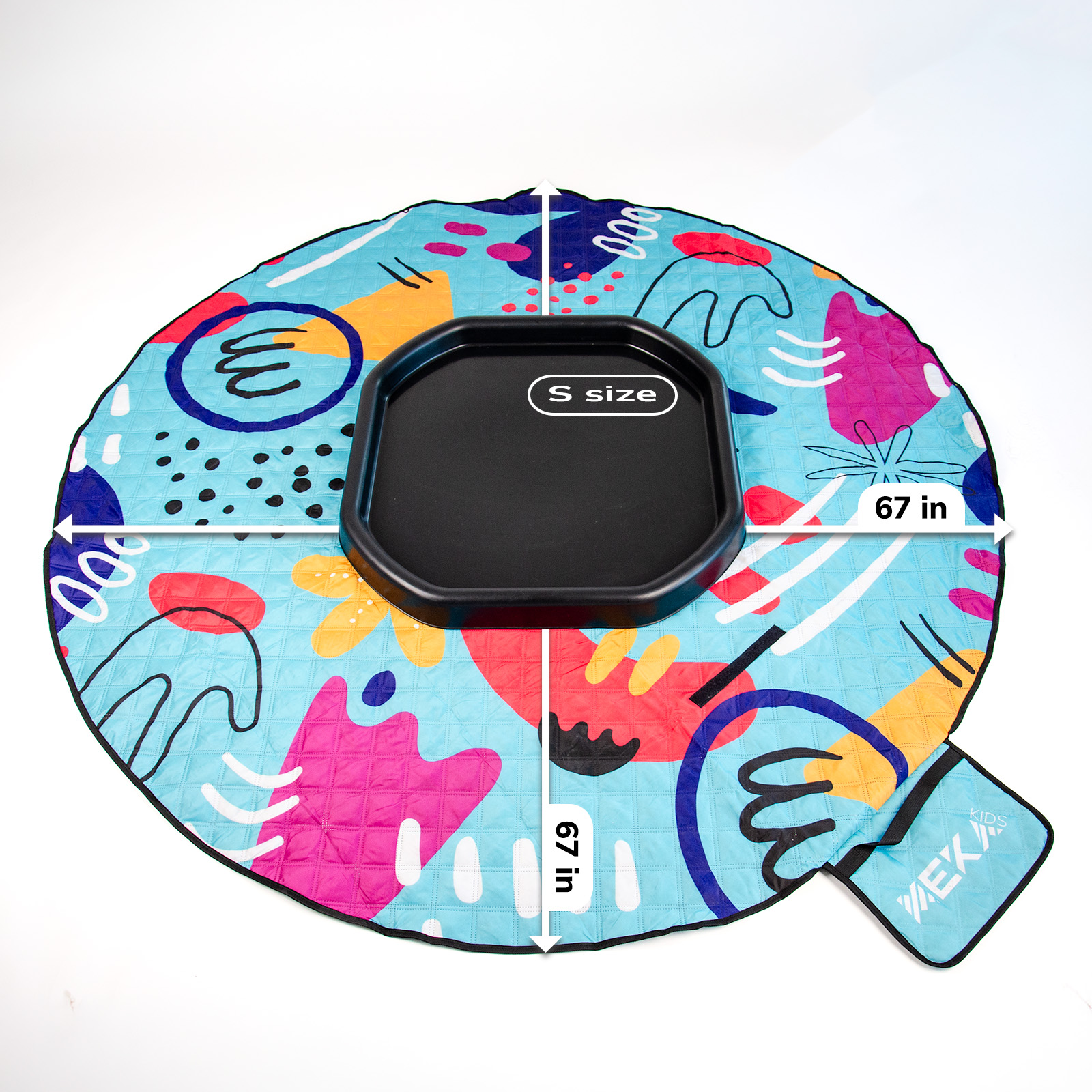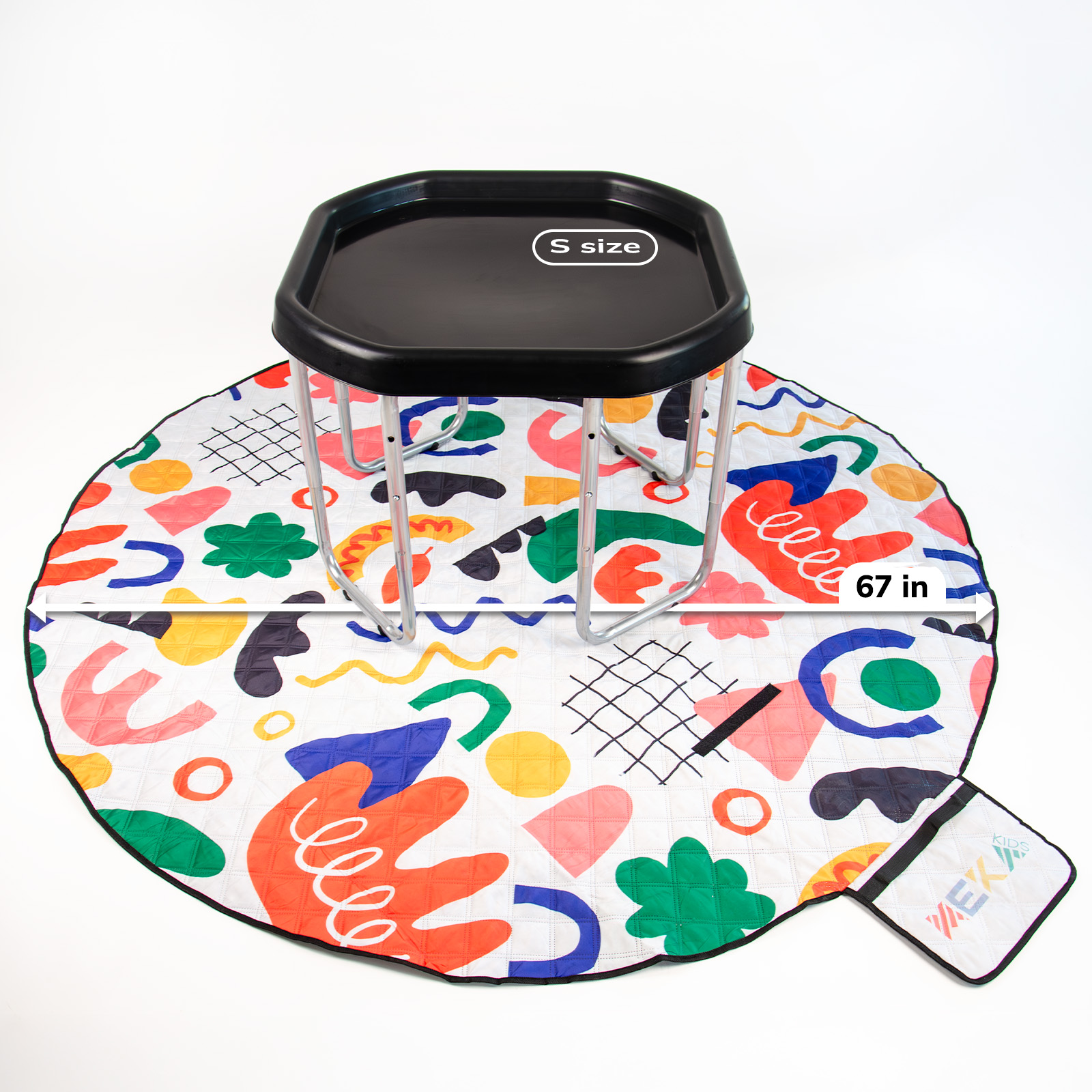 Generous 67in diameter size fits both small and large Tuff Trays and is ideal for outdoor adventures. Works beautifully for cozy indoor activities or energetic play outdoors.